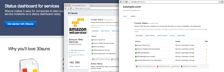 This plugin makes it easy to embed your 30suns hosted status page into a normal WordPress page or post using a