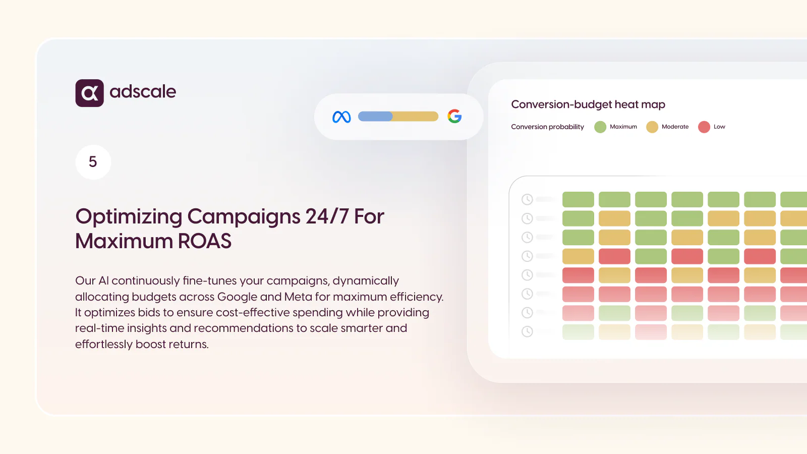 Since 2018, AdScale has been transforming eCommerce advertising through advanced AI and proprietary data signals that even Google and Meta can’t access. This gives our users a clear advantage: more accurate targeting, smarter campaigns, and better results.
