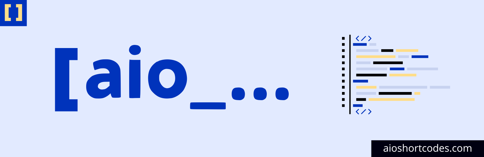 [aio_page_title] - outputs the title of the current page.[aio_page_url] - outputs the URL of the current page.[aio_page_featured_image] - outputs the featured image of the current page.[aio_post_title] - outputs the title of the current post.[aio_post_url] - outputs the URL of the current post.[aio_post_featured_image] - outputs the featured image of the current post.[aio_site_icon] - outputs the site icon (favicon) of your WordPress site.[aio_site_title] - checks the data from your WordPress Admin » Settings » General » Site Title and display the Site Title content.[aio_site_tagline] - checks the data from your WordPress Admin » Settings » General » Tagline and display the Tagline content.[aio_site_url] - checks the data from your WordPress Admin » Settings » General » Site Address (URL) and display the URL like https://aioshortcodes.com/.[aio_home_url] - checks the data from your WordPress Admin » Settings » General » Site Address (URL) and display the URL like https://aioshortcodes.com/.[aio_word_count] - calculates and displays the total word count of the current or specified post, page, or custom post types.[aio_read_time] - estimates and displays the reading time for the current or specified post, page, or custom post types content based on average reading speed (e.g., "5 min").[aio_wp_version] - displays the most current WordPress version of your site.[aio_post_count] - displays the number of posts, pages, or custom post types based on the status and type (e.g., published, scheduled, draft, trash etc.) specified.[aio_plugin_count] - displays the number of installed, active and inactive plugins on the site.[aio_login] - outputs a login link with customizable text and an optional redirection.[aio_logout] - outputs a logout link with customizable text and an optional redirection.[aio_search] - outputs a WordPress search bar with customizable attributes.[aio_year] - outputs the current year, the previous year, and the next year like 2025.[aio_month] - outputs the current month, the previous months, and the next months, like December.[aio_date] - outputs the current, previous, and next dates, like January 7, 2025.[aio_today] - outputs the today's day name like Tuesday.[aio_first_day_year] - outputs the the first day name of the current year like Tuesday.[aio_last_day_year] - outputs the the last day name of the current year like Tuesday.[aio_quarter_year] - outputs the the current quarter the current year like 1.[aio_day_year] - the current day’s number in the year, ranging from 1 to 365, or 366 if it's a leap year.[aio_days_year] - outputs the total number of days of the current year, such as 365 or 366 if it's a leap year.[aio_week_year] - outputs the current week number of the current year like 2.[aio_blackfriday] - outputs the date of Black Friday, such as November 28, 2025.[aio_cybermonday] - outputs the date of Cyber Monday, such as December 1, 2025.[aio_ip] - outputs the user IP address like 1.1.1.1.[aio_tm] - outputs the Trademark Symbol ™.[aio_r] - outputs the Trademark Symbol ®.[aio_sm] - outputs the Trademark Symbol ℠.[aio_c]- outputs the Trademark Symbol ©.[aio_whatsapp send="+919876543210" text="This is my WhatsApp message!"] - create a WhatsApp link (replace +919876543210 with your WhatsApp number and This is my WhatsApp message! with your custom message).[aio_mobile number="987-654-3210" text="Call us on mobile"] - create a mobile call link (replace +919876543210 with your phone number and Call us on mobile with your custom text you want to display).[aio_email send="contact@aioshortcodes.com" text="contact me"] - create an email link (replace contact@aioshortcodes.com with your actual email address and contact me with your custom text you want to display).aio-shortcodes.zip.In simple terms, a WordPress shortcode is a special code enclosed in square brackets, like this: [shortcode]. It allows you to add special features or content to your WordPress website without knowing complicated coding.