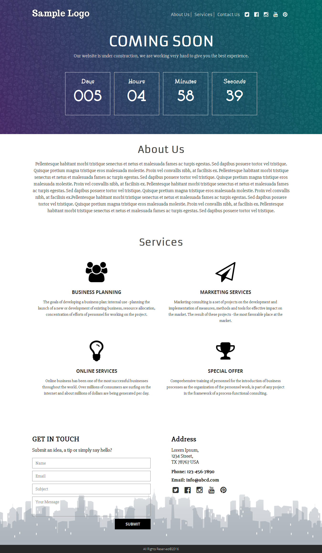 - Social Media Integrated : We have included social media icons in coming soon or construction mode template, so even if your site is in work in progress mode, your visitors can connect with you over social media. We do have easy option at settings to configure your social media profile links.