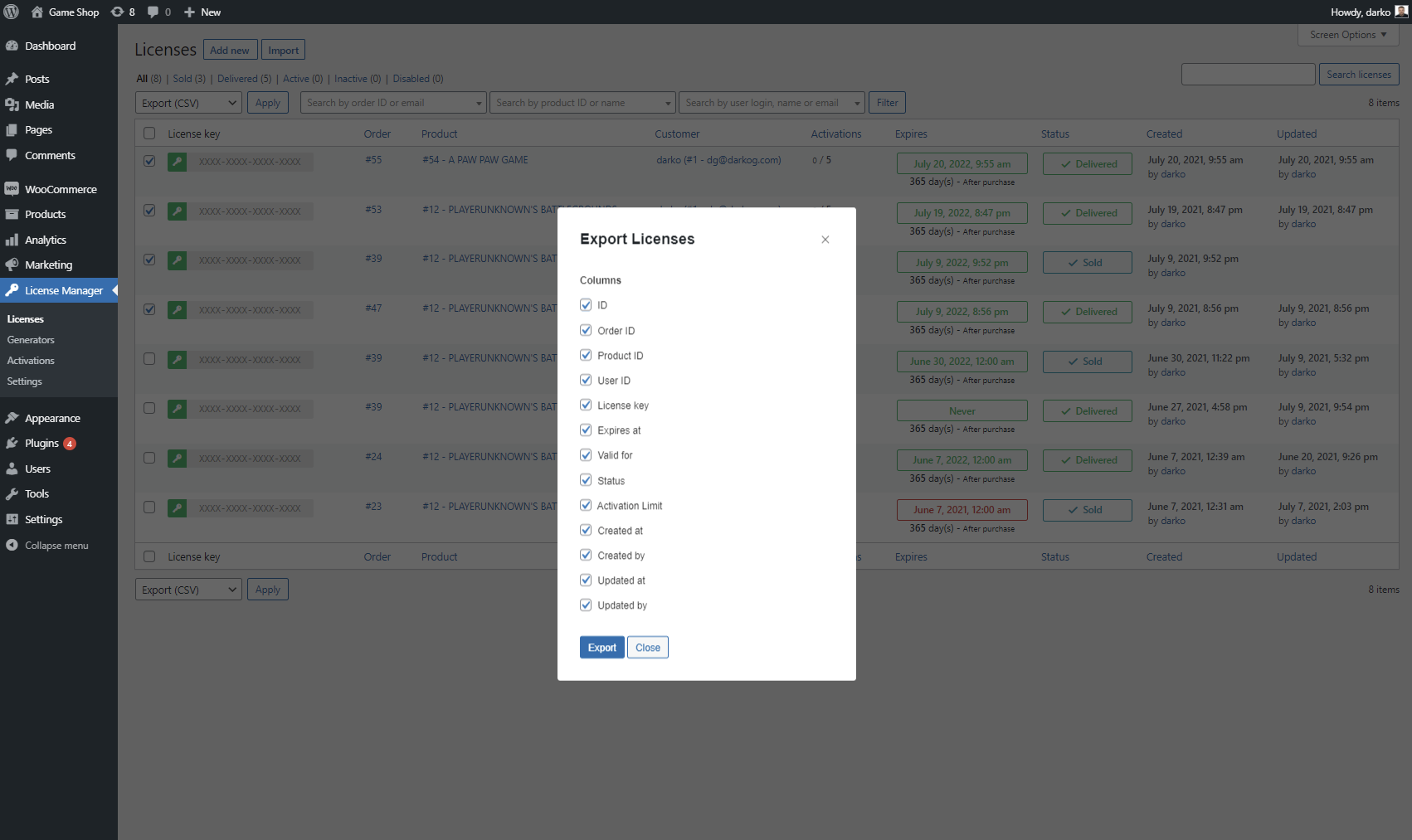 - Manage License Activations - See activation ip, useragent, label... (Read more)