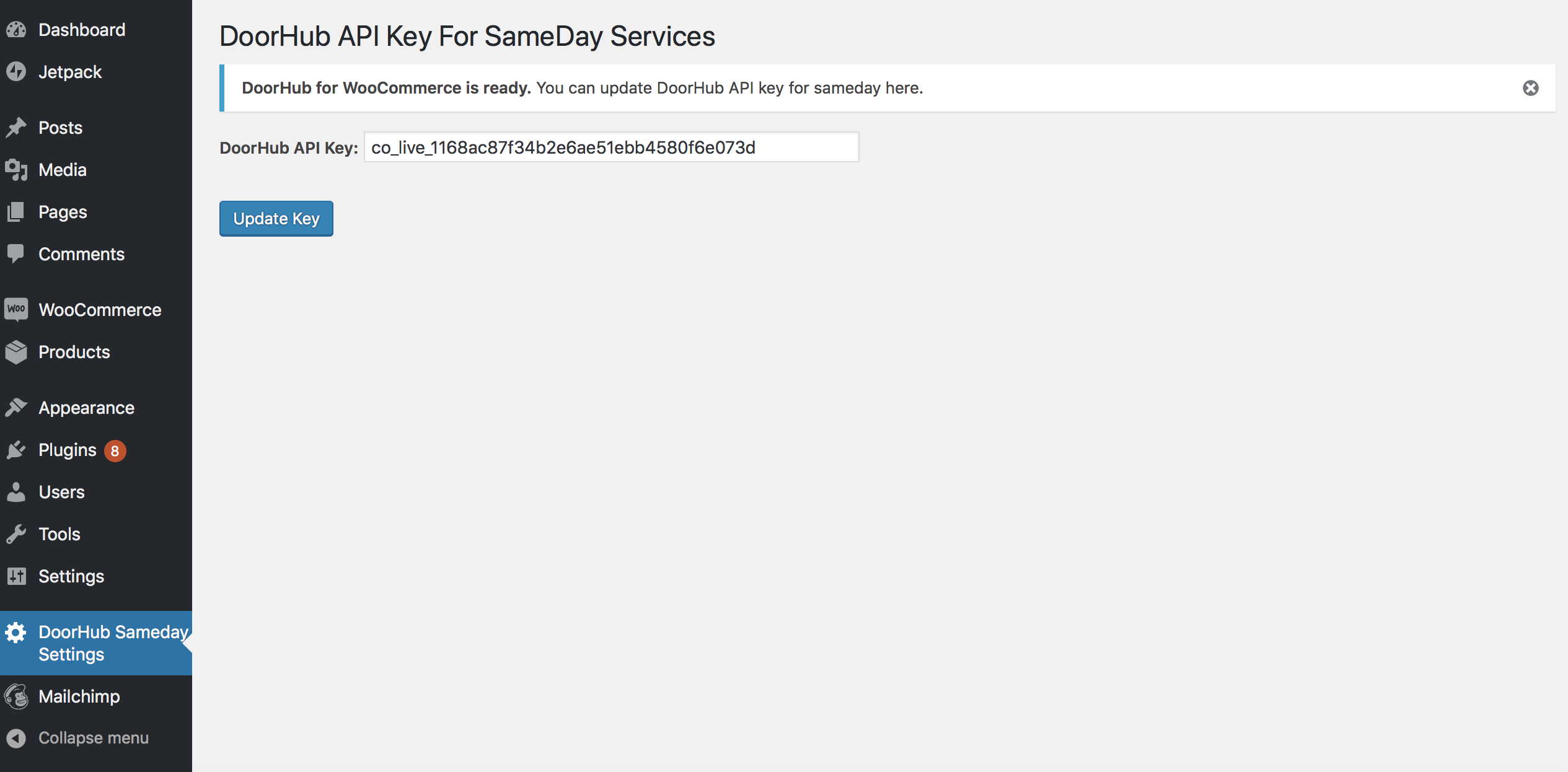 /wp-content/plugins/doorhub-sameday directory, or install the plugin through the WordPress plugins screen directly.its your store api key that you will get from doorhub.io platform.