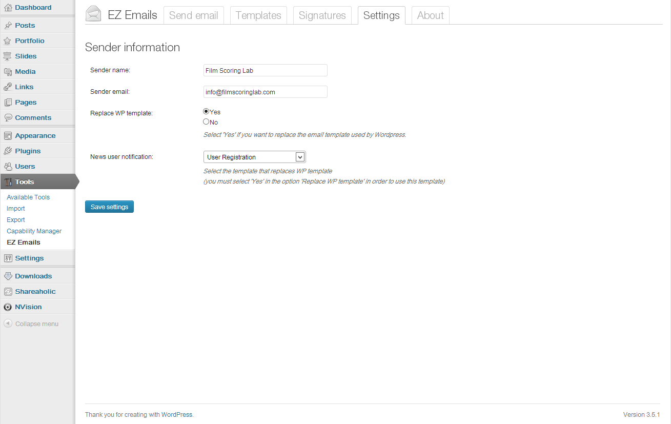 /wp-content/plugins/ directory of your Wordpress installationYes, after creating your favorite template, you can go to the 'Settings' tab and select the template you have just created as a replacement for Wordpress default template.