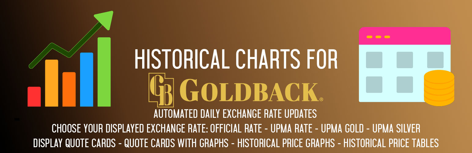 Historical Charts for Goldback is a versatile plugin that fetches and displays Goldback and UPMA exchange rate data from a remote XML API. It provides multiple shortcode-driven display options: