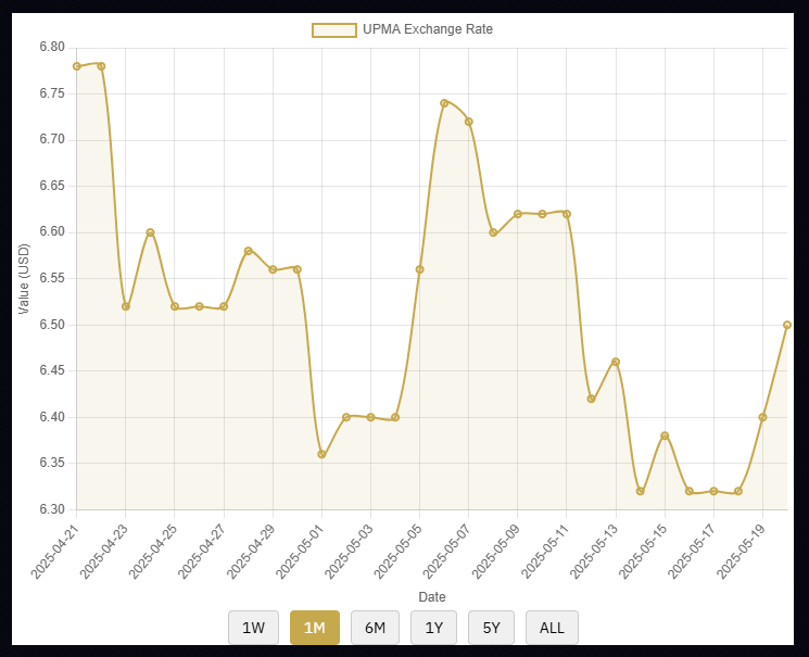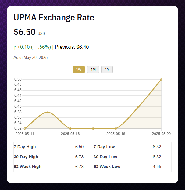Live Exchange Rate Updates: Automatically pulls and displays the latest Goldback and UPMA rates from Ideal Managed Solutions' API.