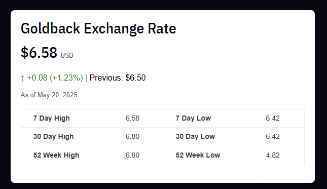 - Share real-time Goldback value with readers on an investment or financial blog.