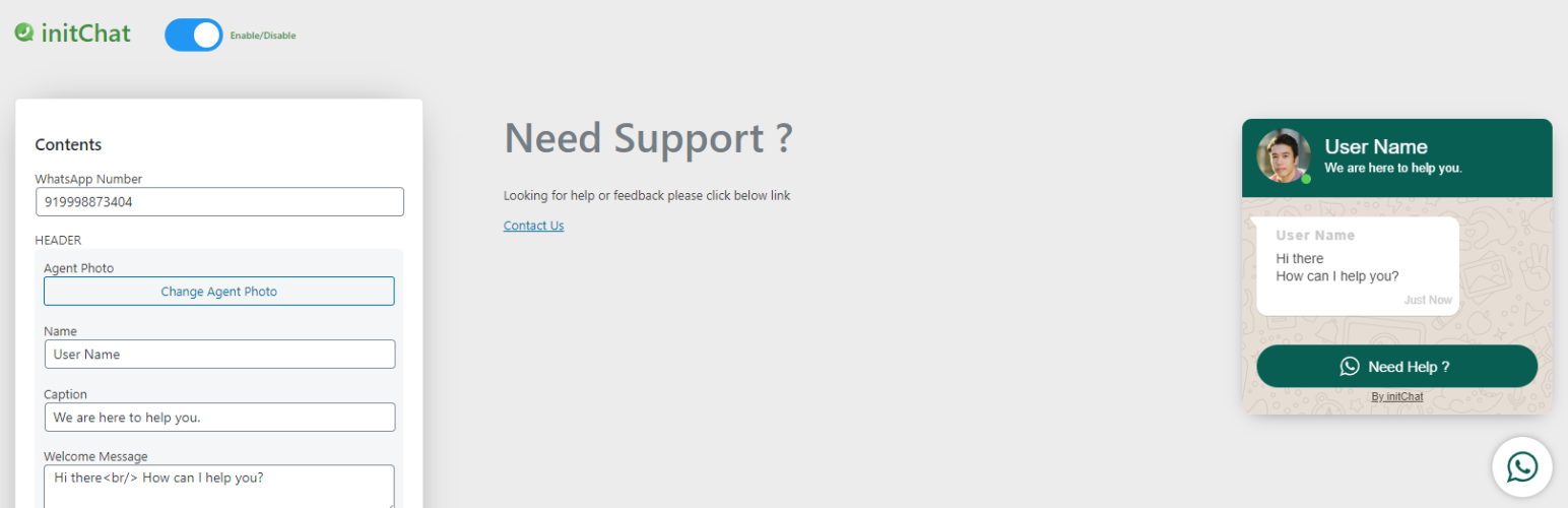 Now a days mostof users are using WhatsApp application and this plugin will intiate chat.