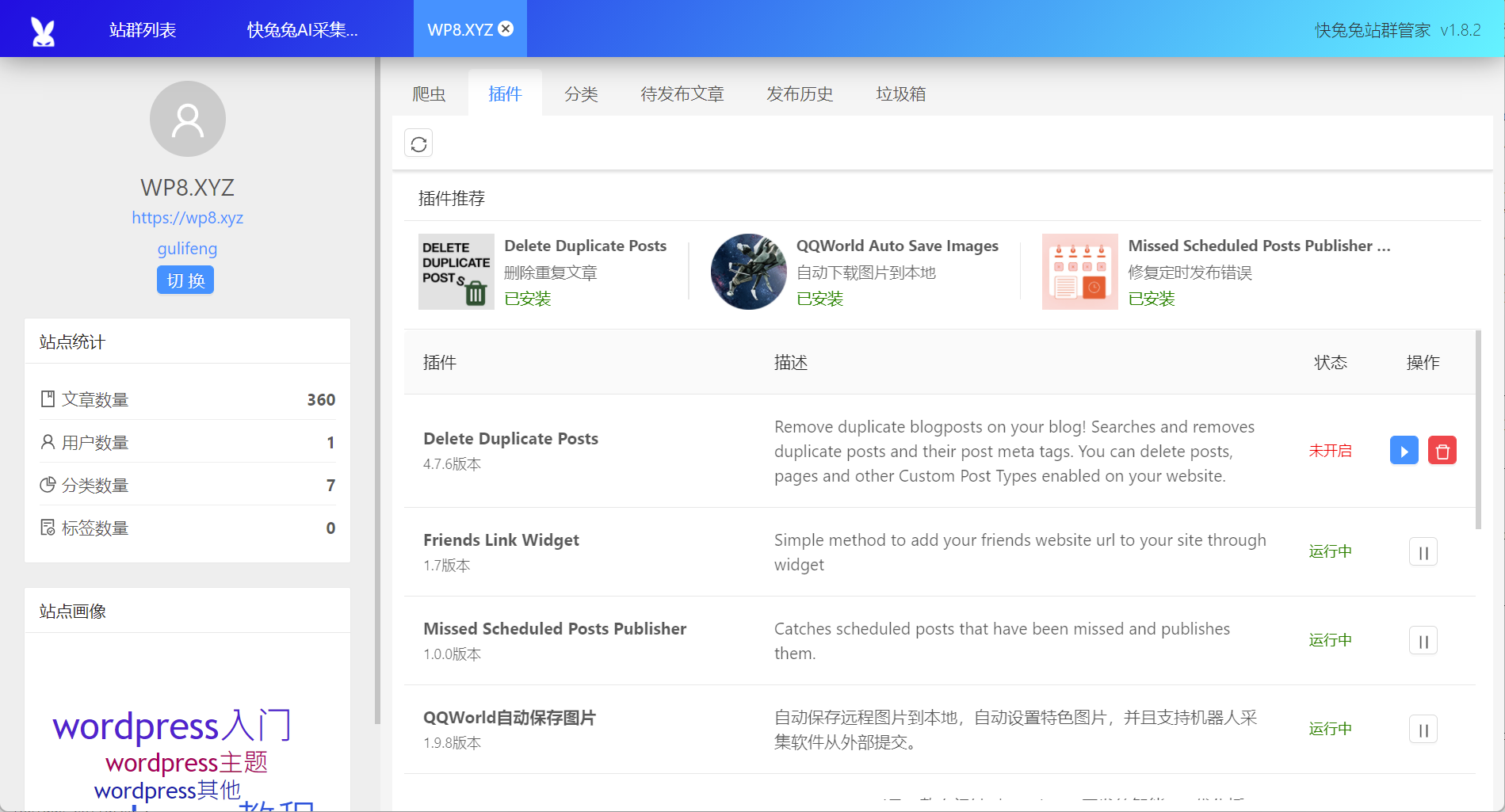 请到wordpress后台,插件管理,安装快兔兔wordpress连接插件(下载地址)、、