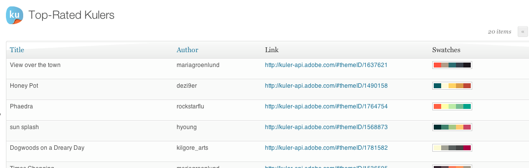 - Go to http://kuler.adobe.com/api and sign up for an Adobe account/Kuler API key