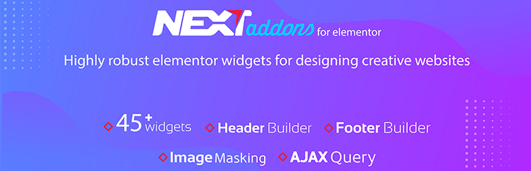 Next Addons Create professional designed pixel perfect websites in no time with the Next Addons plugin for elementor. Amplify your Elementor page building experience with 40+ highly customizable widgets that will give you the access to build sophisticated websites in less time without a single line
