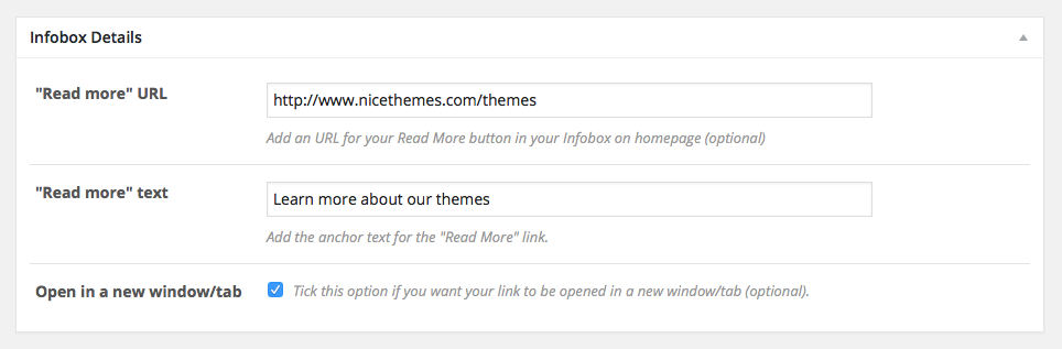 You can decide where and how your infoboxes will link to by entering custom URLs and texts.