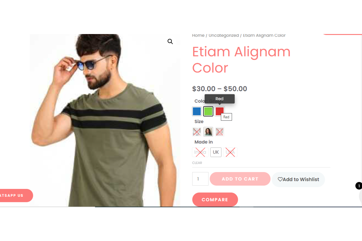 Variation Swatches for the WooCommerce plugin give a much better way to showcase variants of variable products. This plugin will help select the effective style for each attribute, such as color, graphics, or labels. It allows you to show product colors, sizes, styles, and many other features that WooCommerce does not provide.