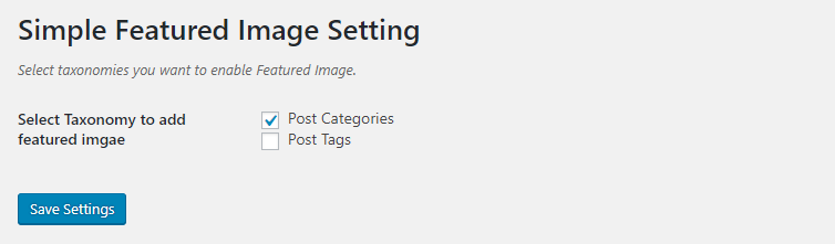 /wp-content/plugins/simple-featured-image directory, or install the plugin through the WordPress plugins screen directly.Login to your WordPress admin dashboard, Go to Settings > Simple Featured Image. Then, select your desired taxonomy to apply the featured image.