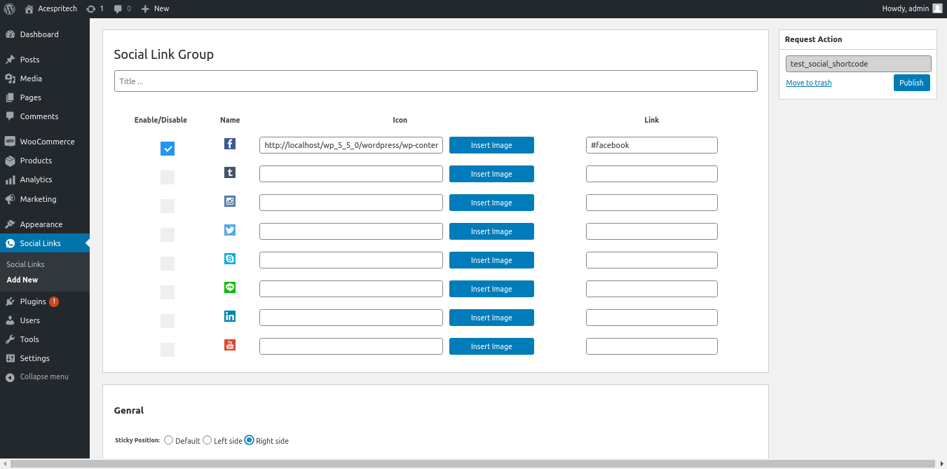 The Social Link Groups plugin adds a shortcode to your WordPress website allowing you to display icons linking to your social media profiles to your website. It's allowed to create a separated group of social link icon group to display it freely in any WordPress page, footer and header using shortcodes of each group. The Social Link Group plugin which lets you add icons for Facebook, Twitter, YouTube, Instagram, LinkedIn, Tumblr, Skype and many more. It's one of the best plugin for WooCommerce and eCommerce WordPress website for link social media profiles. With it, you can easily choose which profiles to link to your social media icons, as well as align them to the left, center, or right with stickey using shortcode.