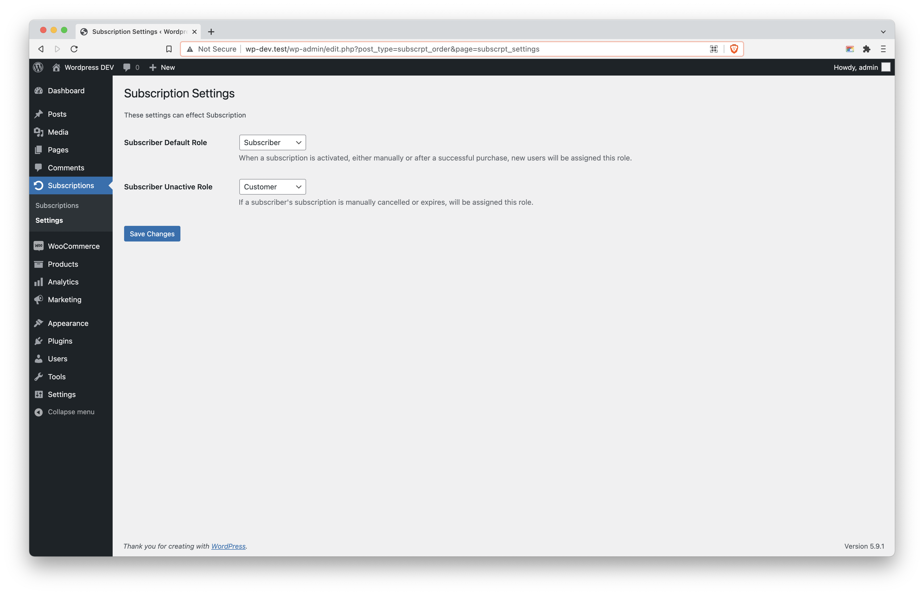 - Activate the 'Subscriptions for WooCommerce' plugin.