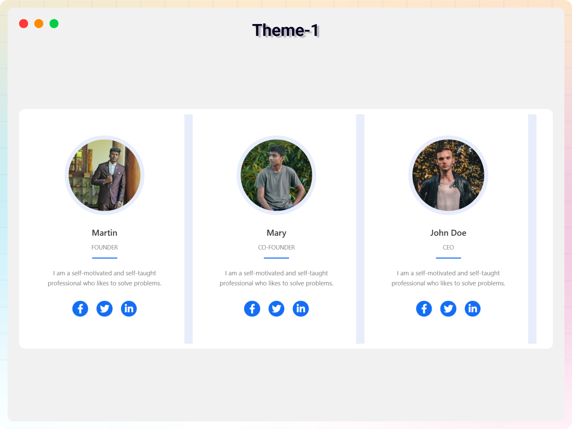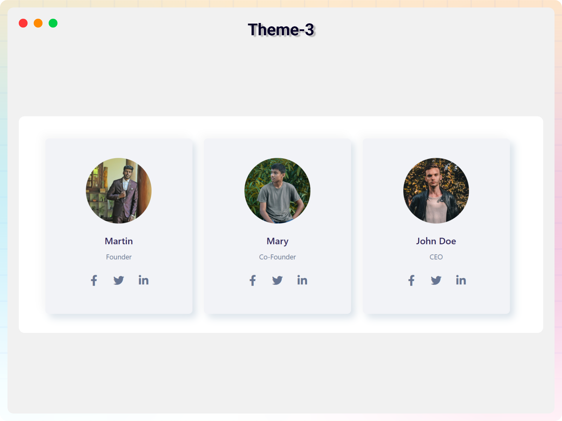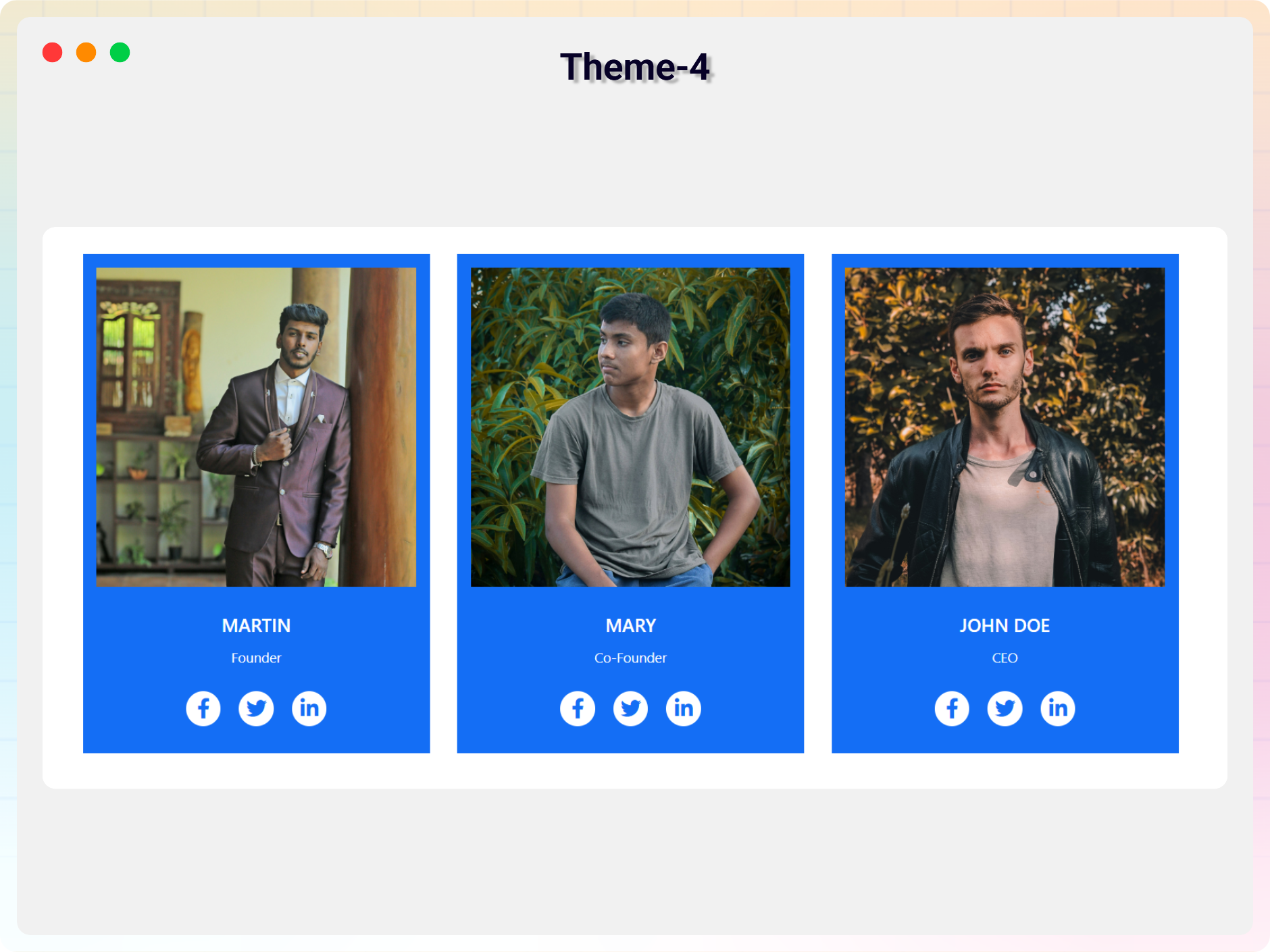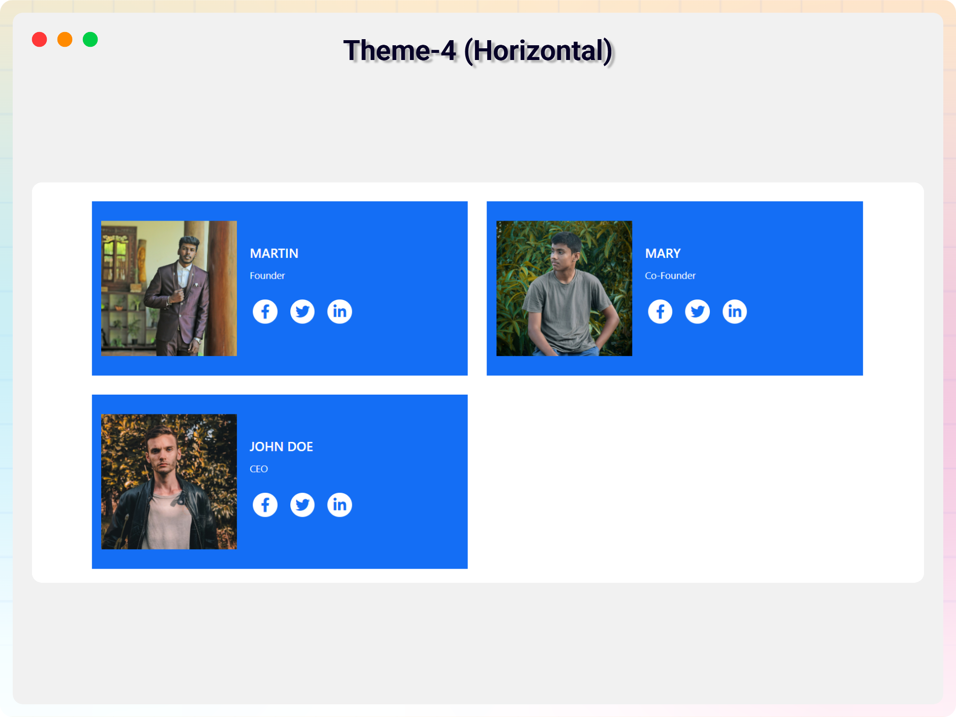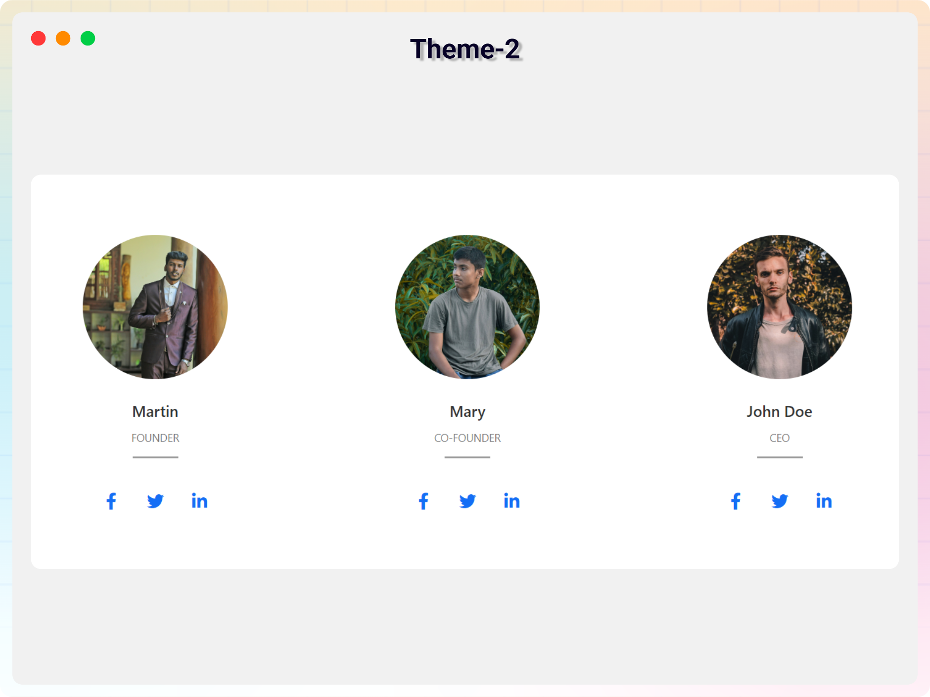 - Social Media Icons – Add social links for each member.