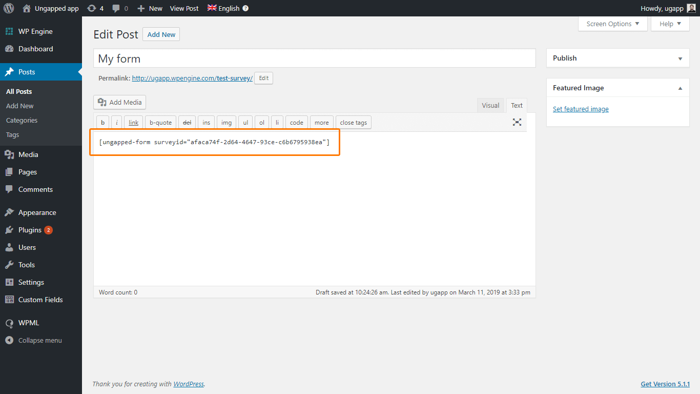 - Add your Ungapped content by using the short codes as described above