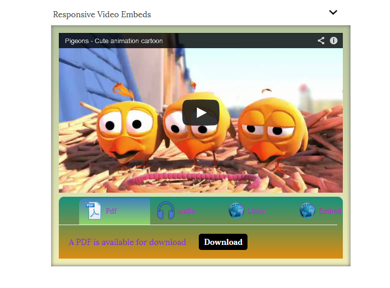 videos with pdf link,audio links and also specify the html content for that video.
