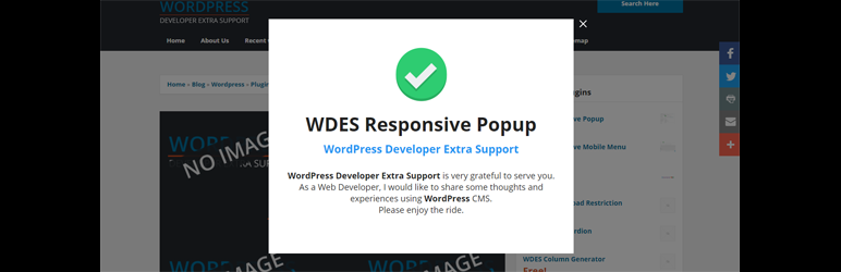 WDES Responsive Popup is a desktop, mobile, browser, and user/developer friendly. This plugin is design for your window popup content for your WordPress website. You can create a customizable popup window using shortcodes for your dashboard editor (post, page, widgets, and more) and a ready function for your custom templates. Commonly used in login, registration or signup, contact form, and more. You can add unlimited popups with their own configurations (