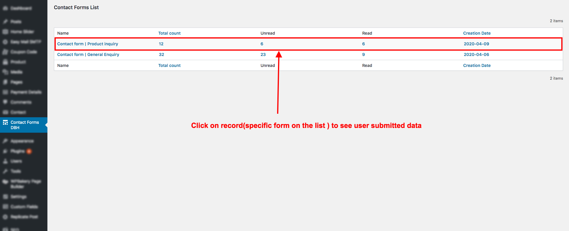 - Upon successful activation, you'll find "Contact Forms DBH" in the admin menu.