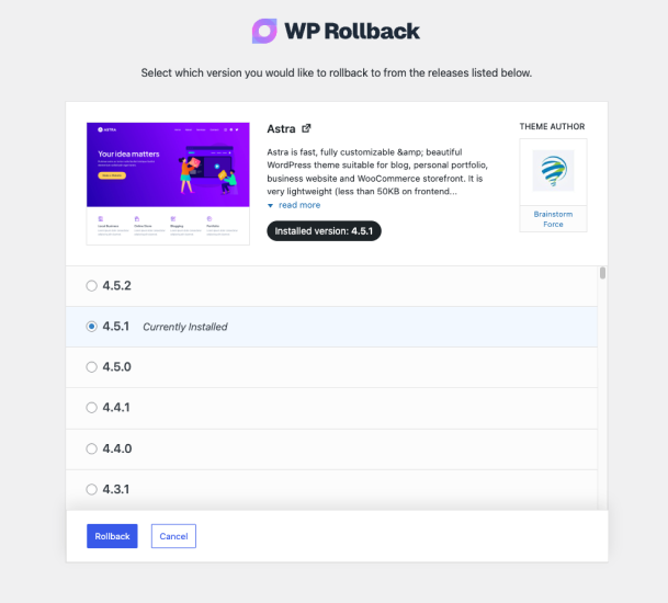 Quickly and easily rollback any theme or plugin from