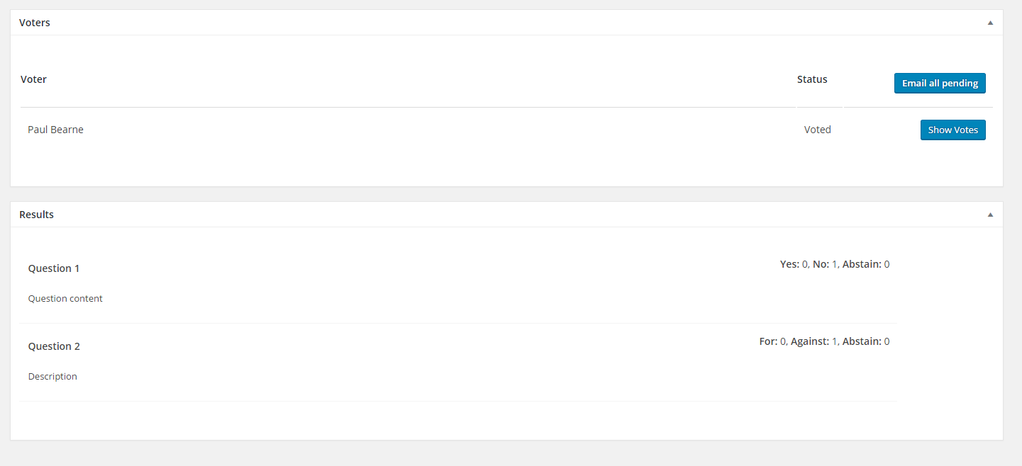 WP Vote records and creates reports on who voted, when they voted and how they voted.