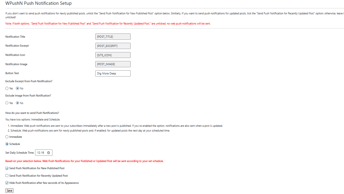 WPushN.com. This plugin creates a subscriber base for your WordPress site and sends push notifications automatically to the subscribers upon a new post being published or a post being updated. With every new post or updated content, your subscribers are instantly notified, keeping them connected and informed in real-time. This seamless communication ensures that your audience never misses an update, fostering stronger engagement and driving consistent traffic to your website. Whether you're running a blog, e-commerce store, or news portal, WPushN makes staying connected with your audience effortless and effective.