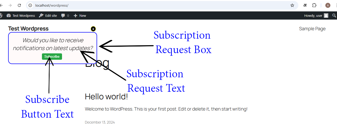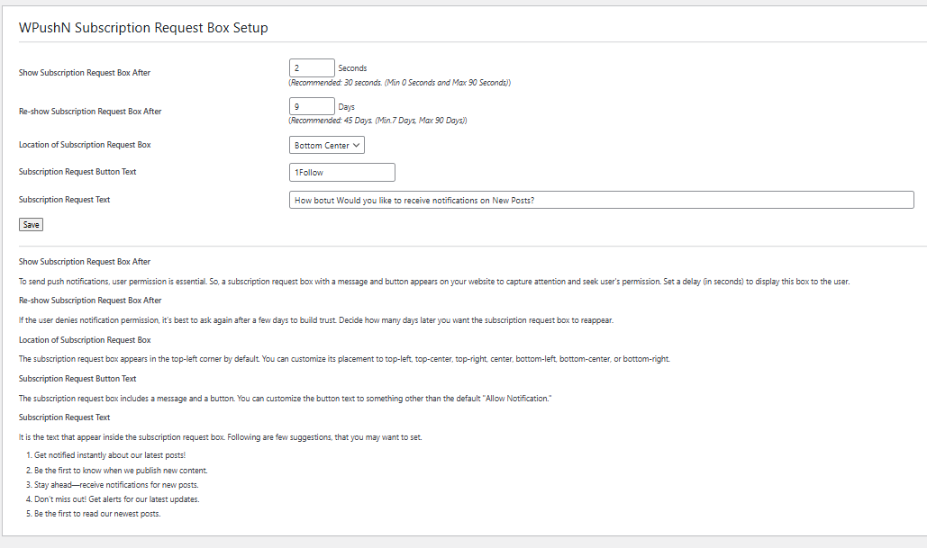 - Trigger browser notification permission requests when visitors interact with the subscription request box.